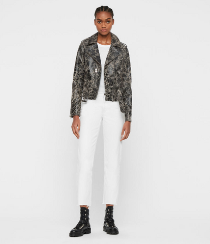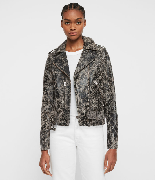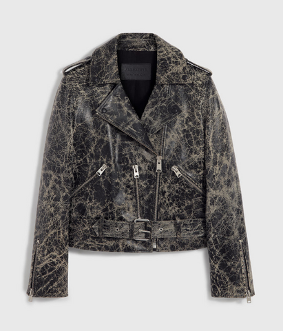 Cracking. The iconic Balfern Biker Jacket has been reworked with a worn-in cracked effect in monochrome hues. Motorbike optional.